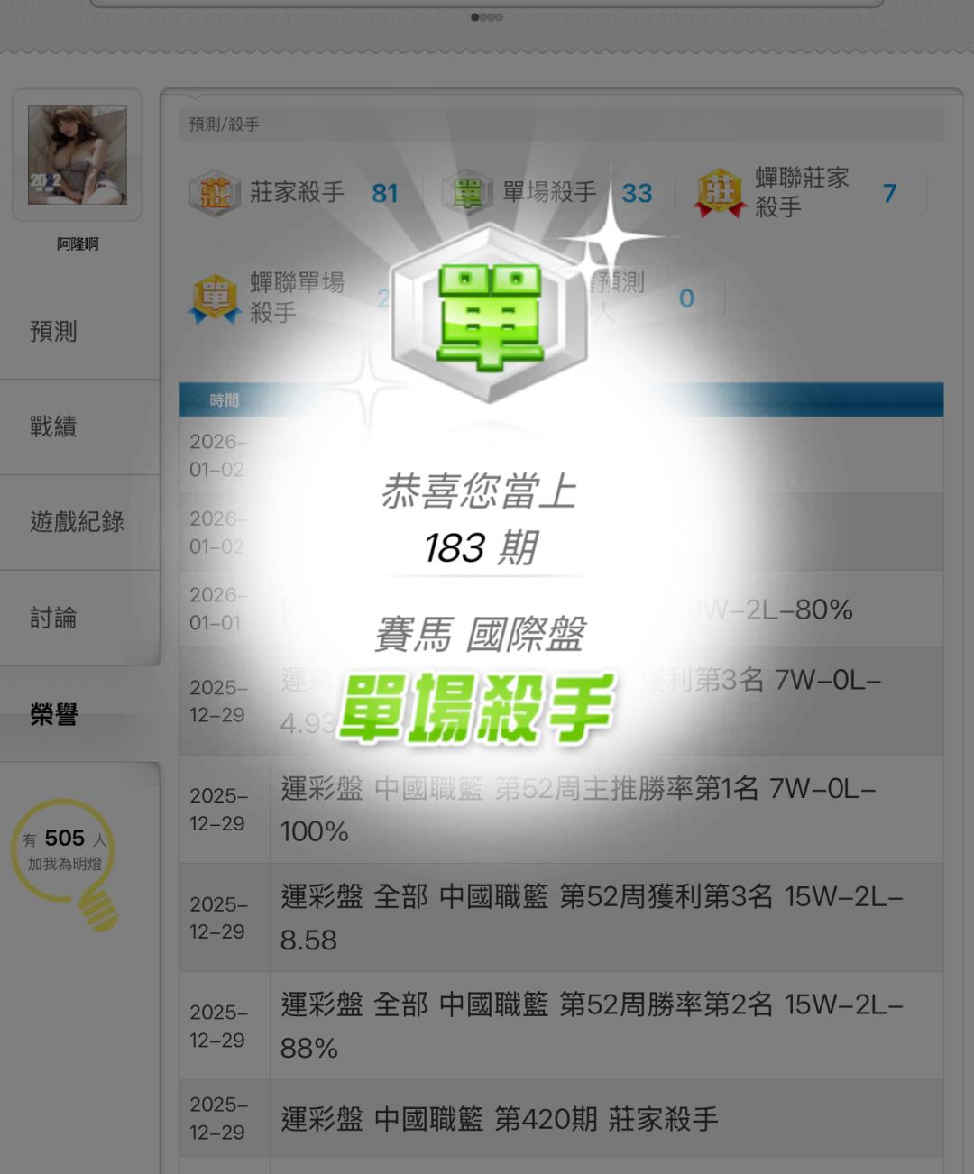賽馬 >> 1/4🐎🎑國際盤 賽馬 第50周主推勝率第1名 3W-0L-100%