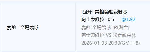 足球 >> 1/03英超台彩單場=20:30讓分推薦!!