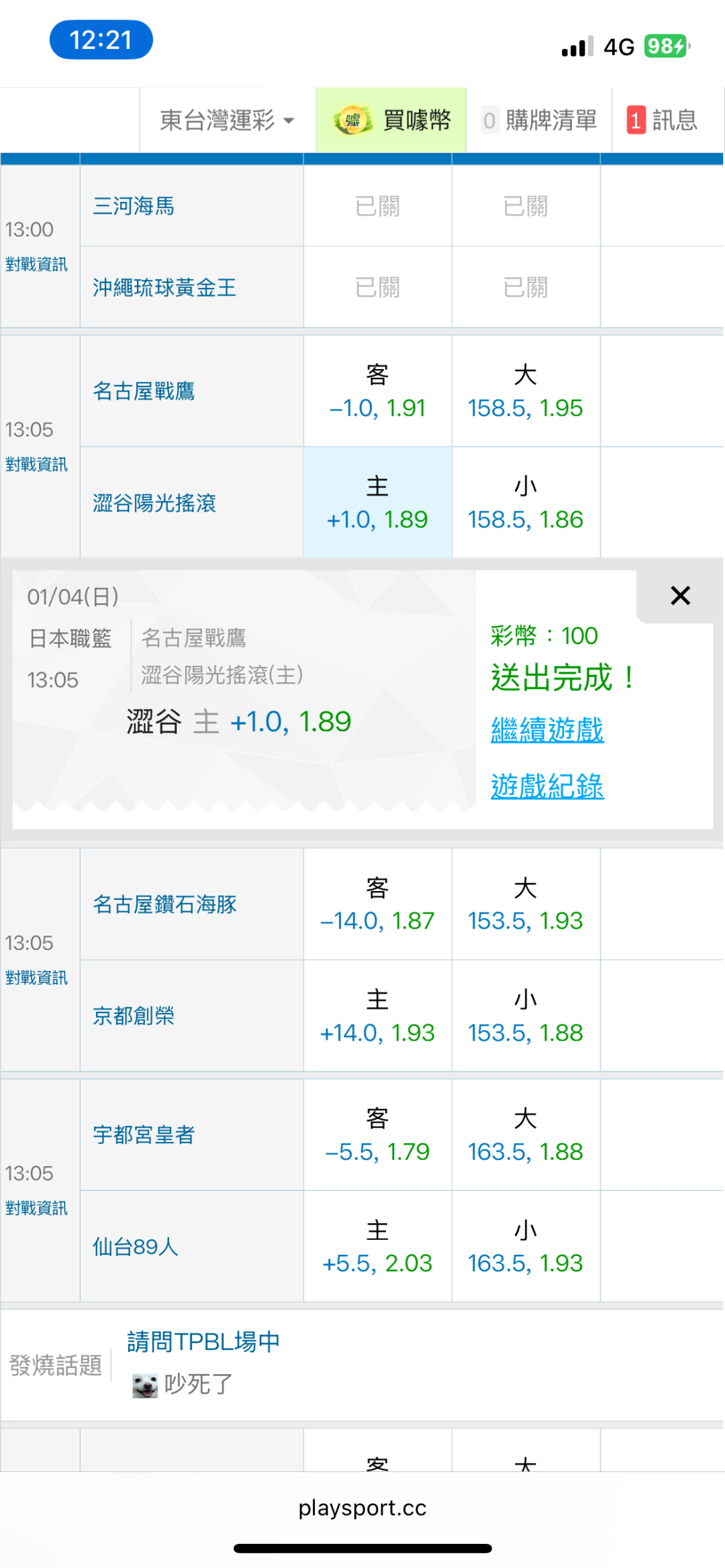 >> 1/4東台日籃國際盤【主推近7日過6】主推信心滿滿(貓場)均注獲利 特價79~