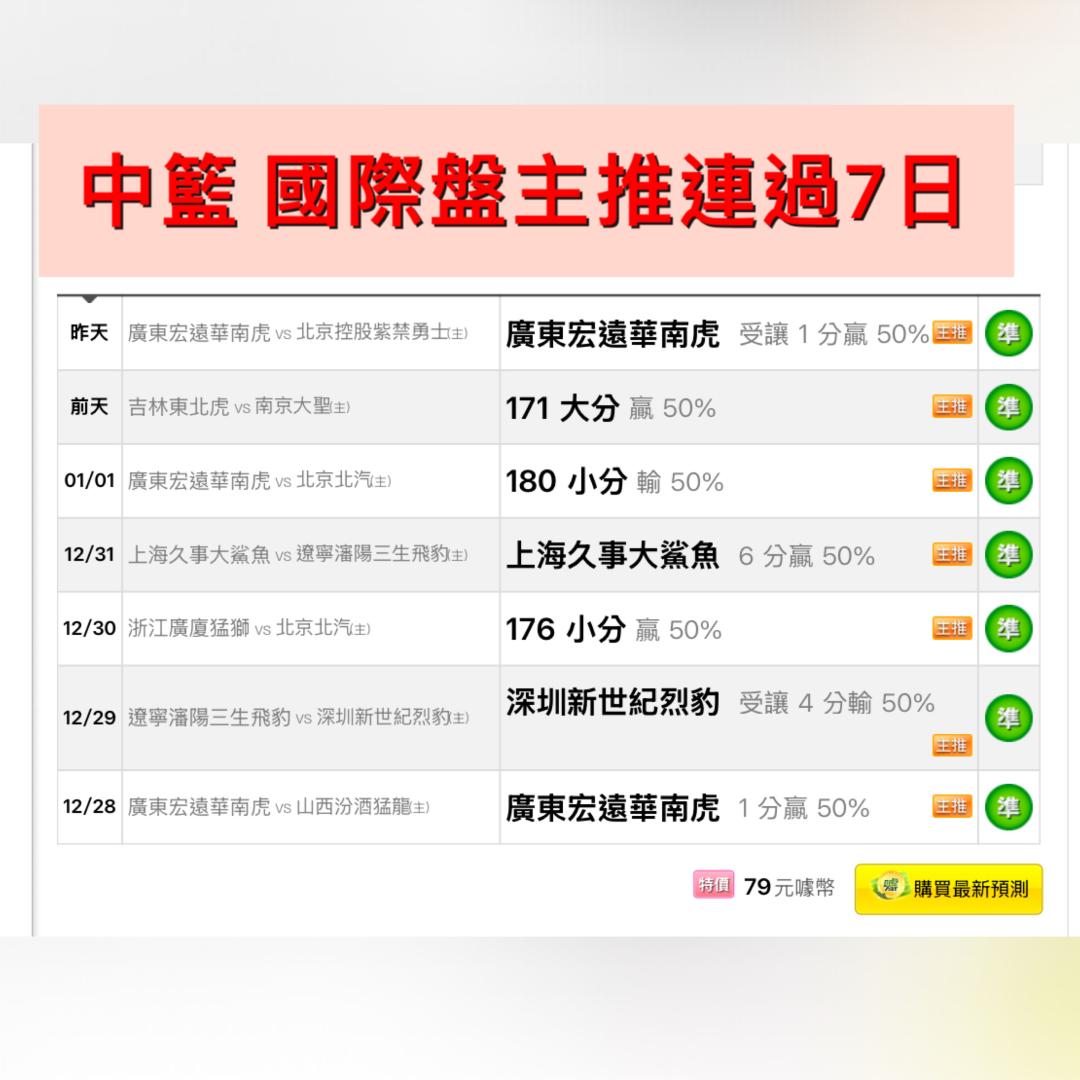中國職籃 >> 1/4🌃🏀中籃 國際盤主推連過7日《山東vs南京》