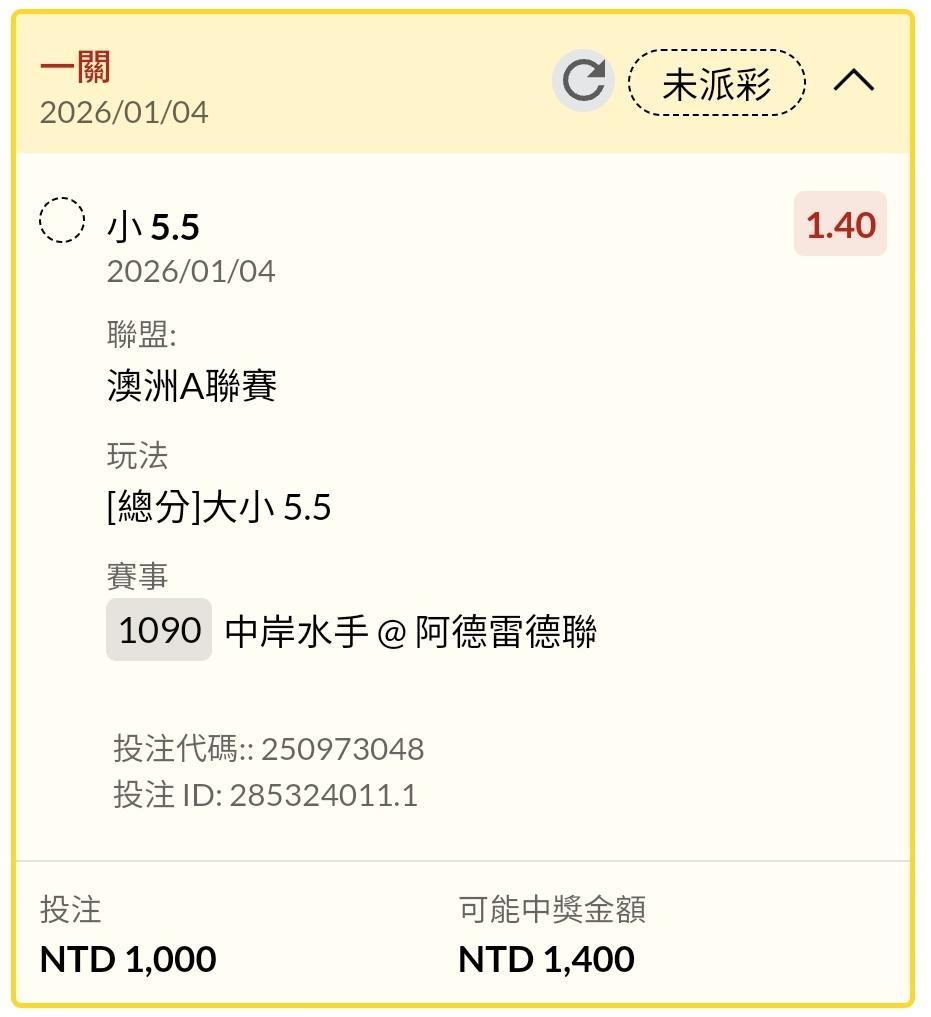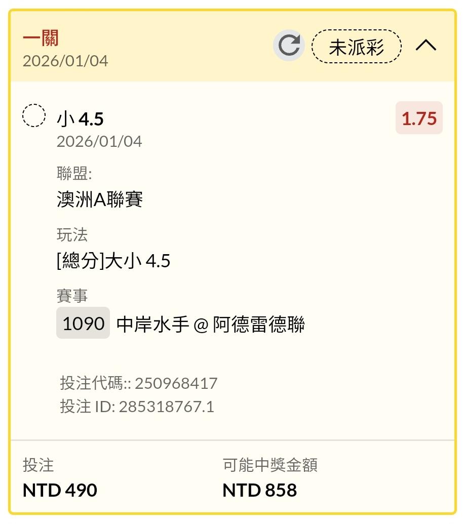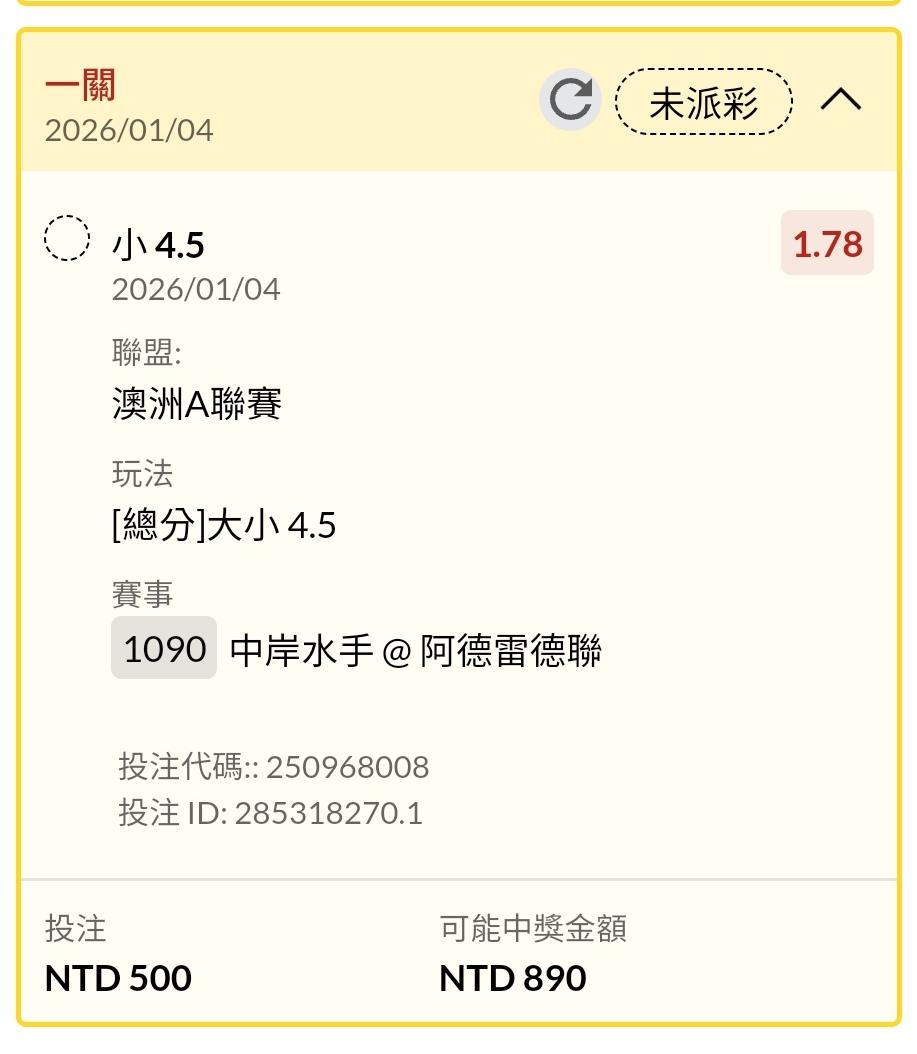 >> 1/4 場中 中岸水手 @ 阿德雷德聯 4.5小!!