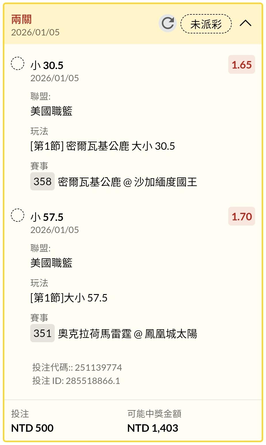 >> 1/5 演BA 二串一 娛樂單!!
