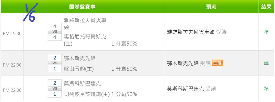 俄羅斯冰球 >> 昨天 3過3 大獲全勝-[主推 晚上7點 台彩場中 上海VS老虎]-有信心 拚連2天全過
