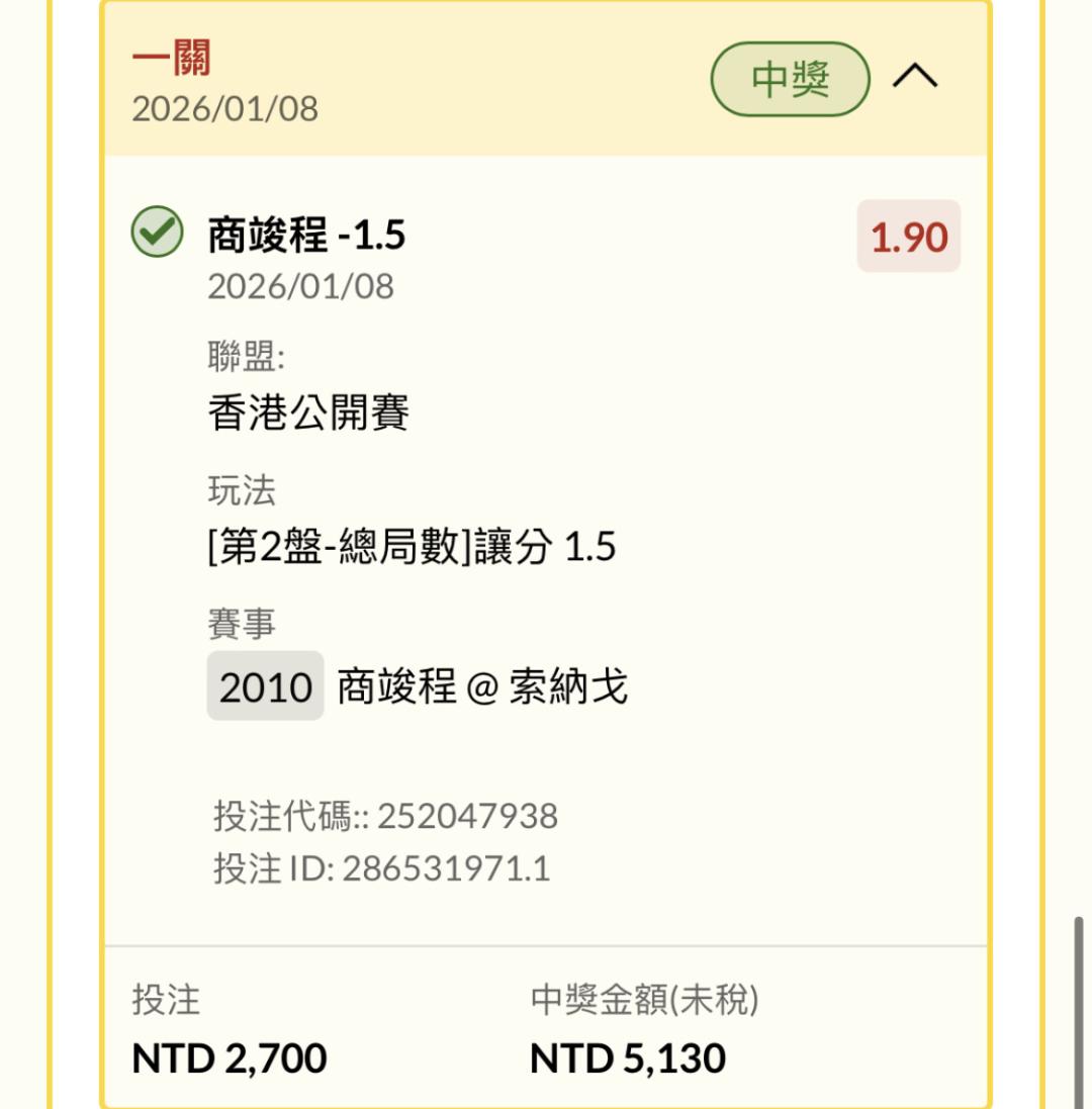 粗暴推薦:商竣程 讓分 -1.5 20K