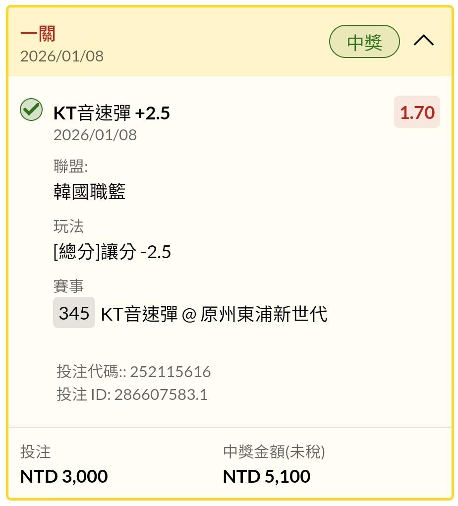 >> 1/8 場中 水原vs原州 水原+2.5(撿到錢)