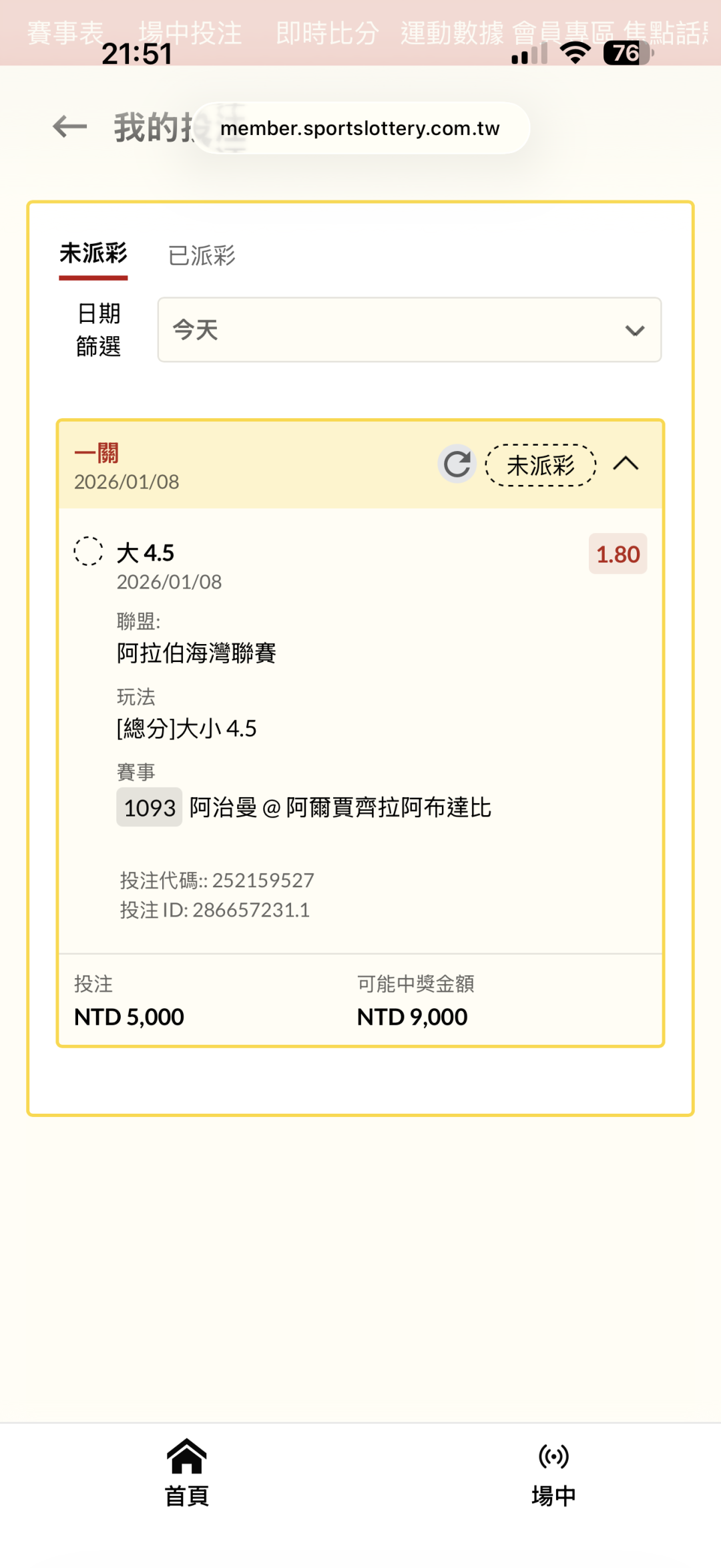 足球 >> 阿聯酋場中1.5大上半小注!參考!