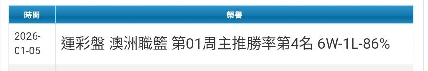 主推勝率第4名 6W-1L-86%