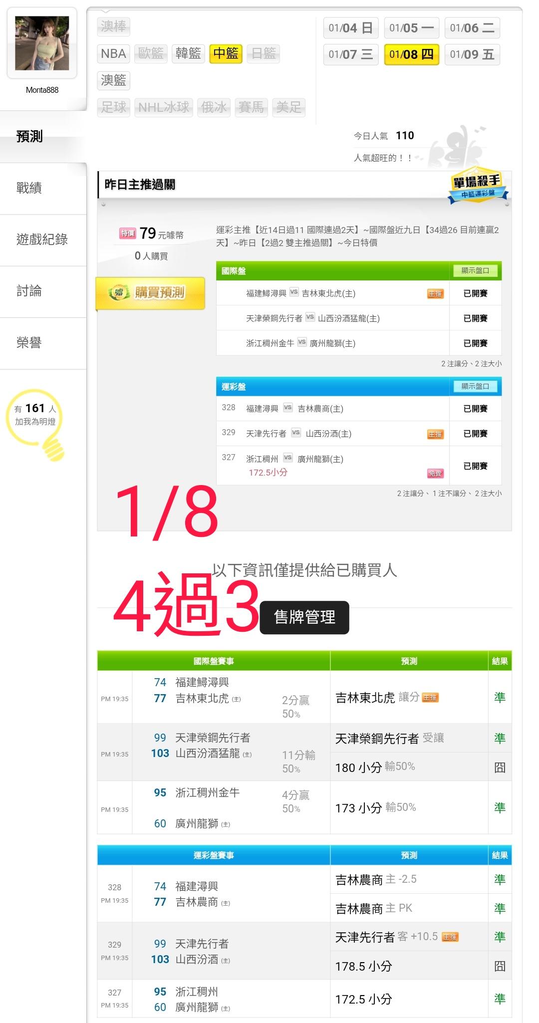 中國職籃 >> 運彩主推【近15日過12 國際連過3天】國際盤近10日【38過29 目前連贏3天】