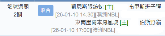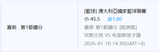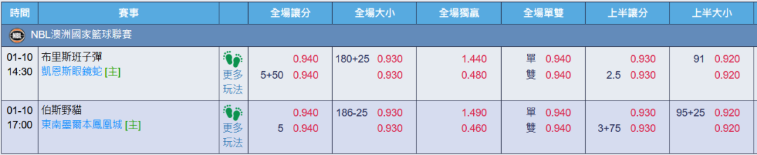 澳洲職籃 >> 1/10【雙盤全過=4個準】【小叮嚀2X1過關】14:30第一節小分推薦!!