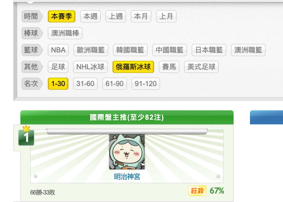 俄羅斯冰球 >> 🏒量身打造,俄冰 國際讓分 近18日18過15,本賽季主推暫居第一