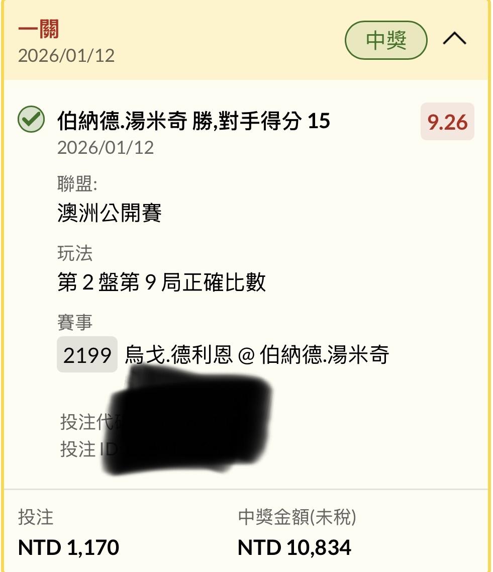 >> 運彩 不派彩 大概網球賠錢了 孬莊死