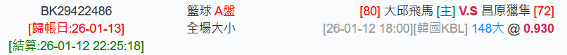 韓國職籃 >> 1/13【國際主推連過2天】【國際連贏2天4過3】18:00台彩單場一節受讓推薦!!