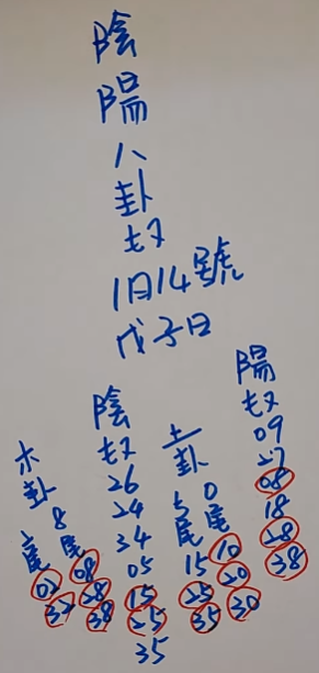 >> (01/14) 今彩539:陰陽八卦數★有需要再參考★(上期中陰數+7尾=2星)