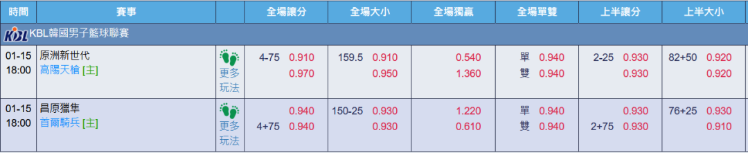 韓國職籃 >> 1/15【國際主推近4過3】18:00台彩單場=第一節讓分推薦!!