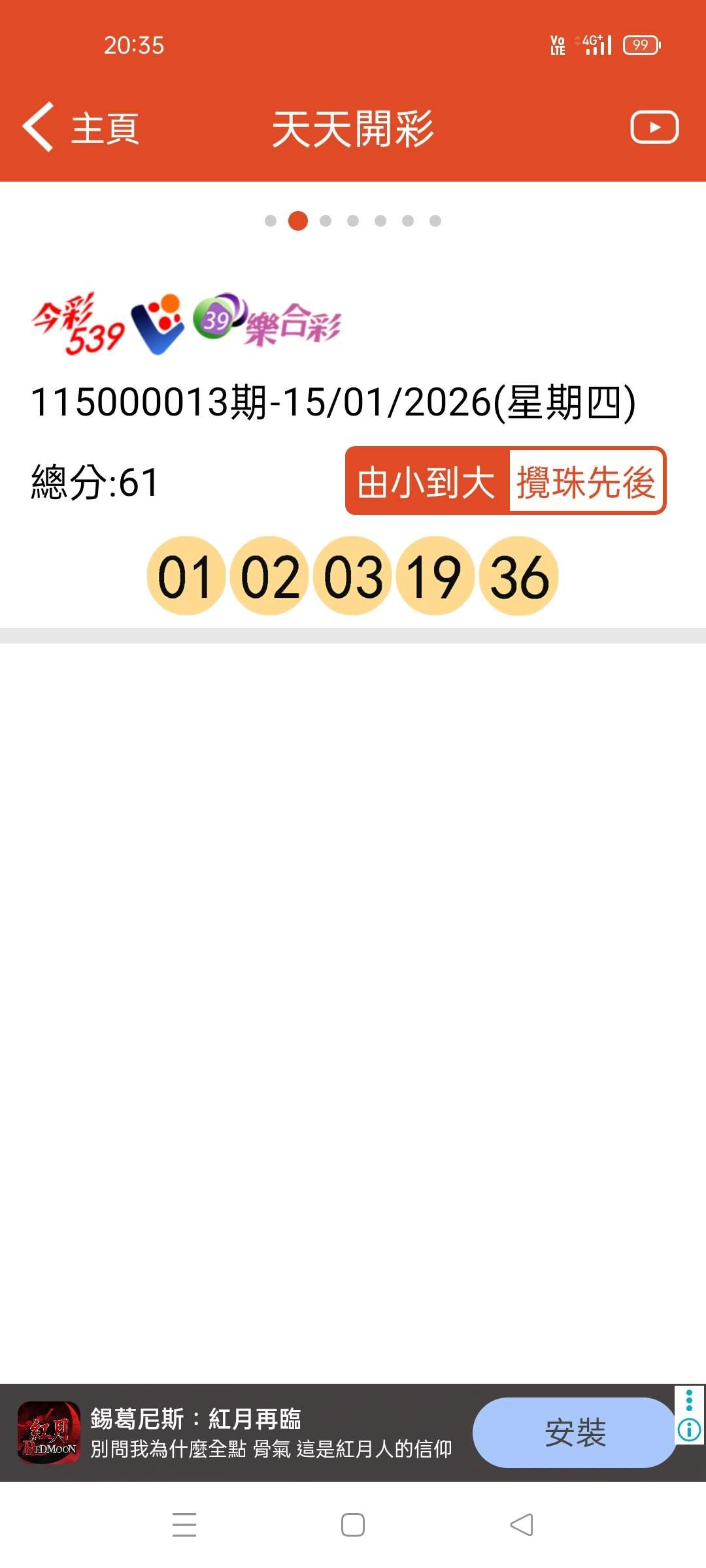 彩球 >> 539「今晚斬兩樣」