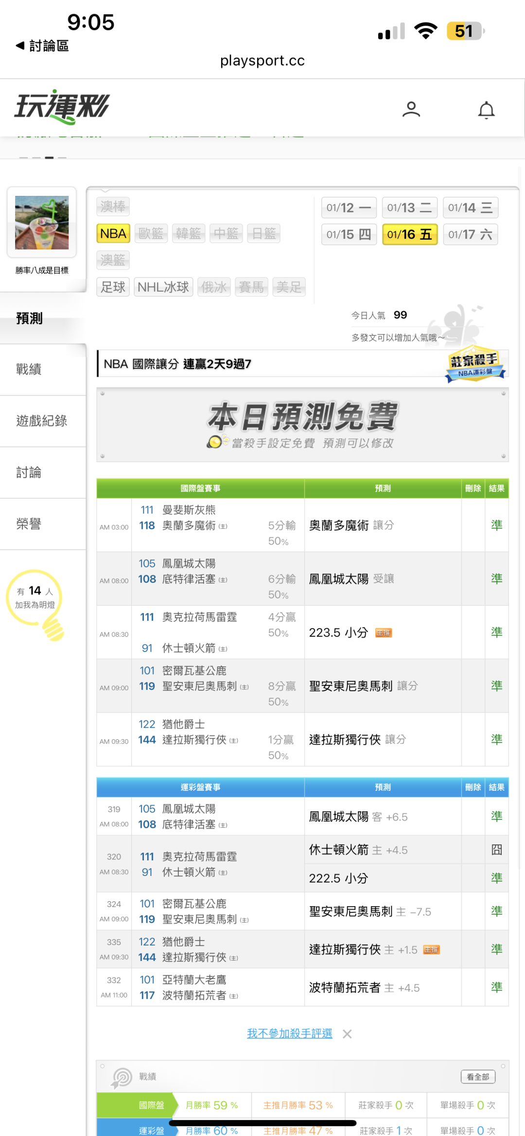 NBA >> 1/16賽事免費分享!籃球、冰球、足球~