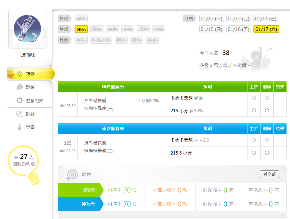 NBA >> 【分享】勝率70%,最近都跟一位最近蠻綠的🔥🔥