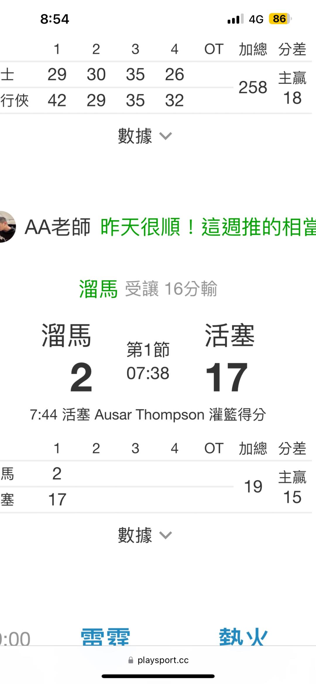 全場上看50-60分,主力沒打二陣又不行,這沒辦法不輸50分偷笑了