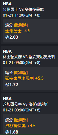1/21賽前預測【NBA例行賽】多倫多暴龍 @ 金州勇士