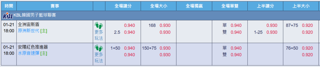 韓國職籃 >> 1/21【運彩讓分 近15日15過12】台彩單場18:00初盤分享+第一節大分推薦!!