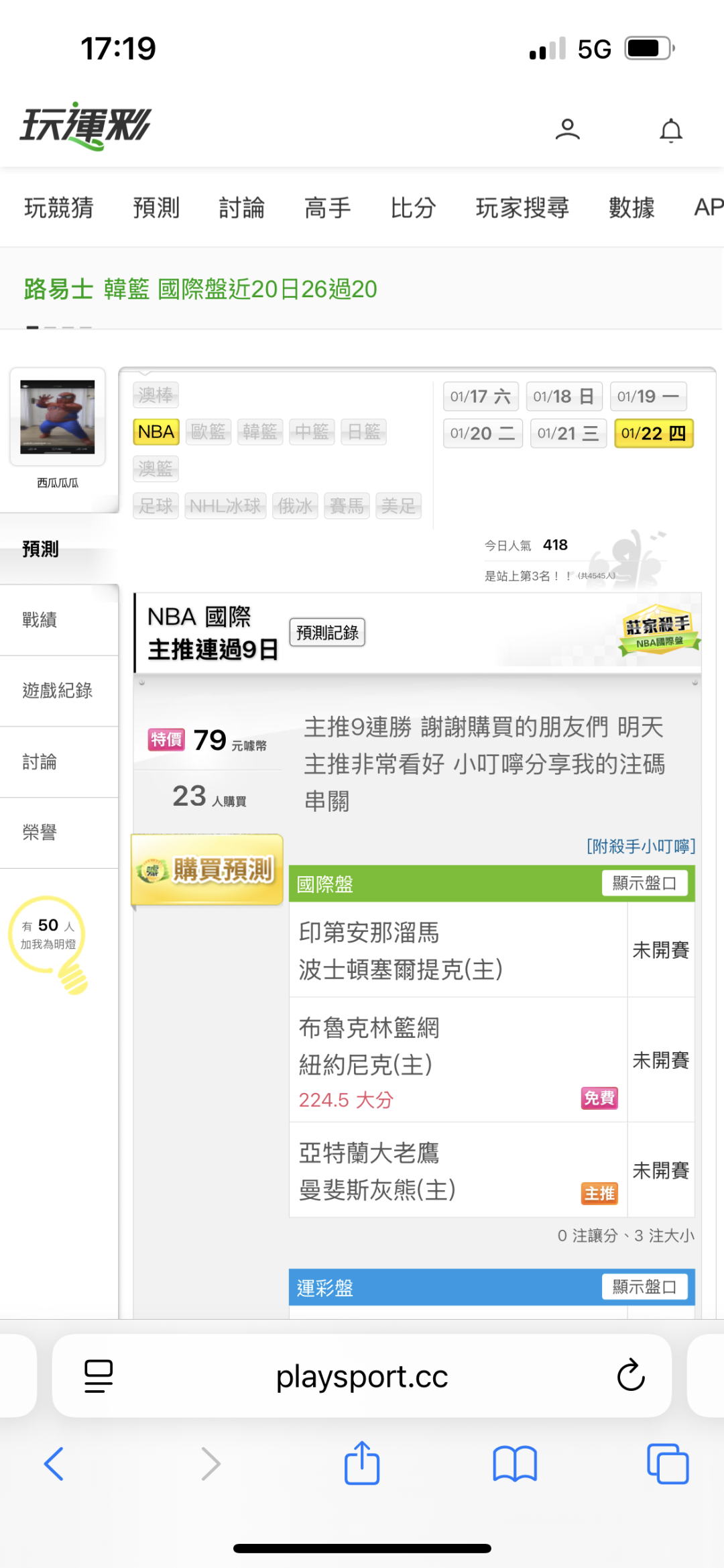 NBA >> 主推連過9天 謝謝購買的大大們 明天也非常有信心 小叮嚀有注碼串關可以參考