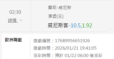 歐洲職籃 >> 1/22 歐籃推薦【國際盤主推連過3日】【免費場歡迎參考】【今日特價】