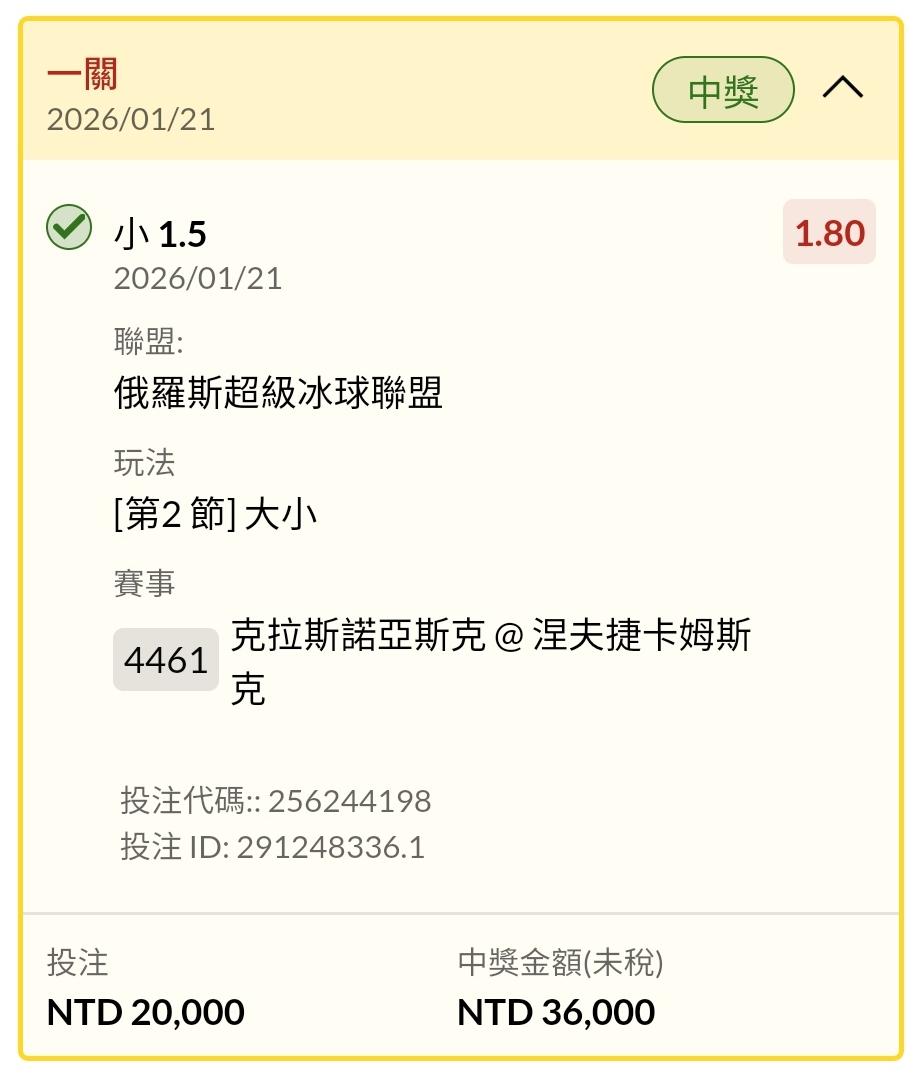 俄羅斯冰球 >> 1/21 場中 克拉斯諾亞斯克 @ 涅夫捷卡姆斯克 第二節1.5小!!