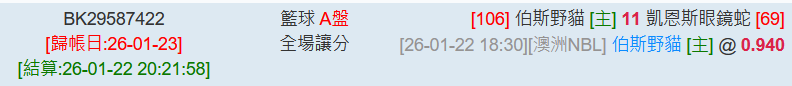 澳洲職籃 >> 1/22【國際讓分近7日 8過7】【小叮嚀2X1過關】16:30初盤分享+第一節受讓推薦!!