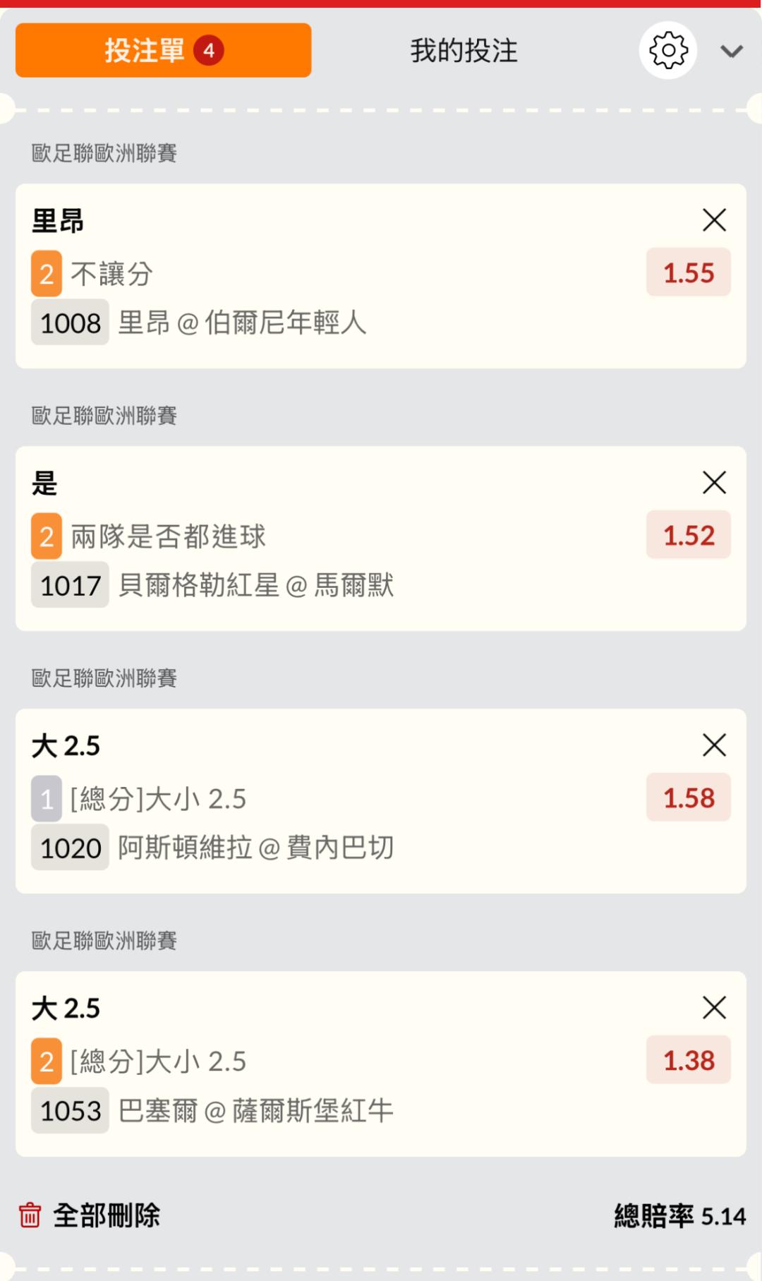 >> 歐冠五倍卷 (*4串低賠