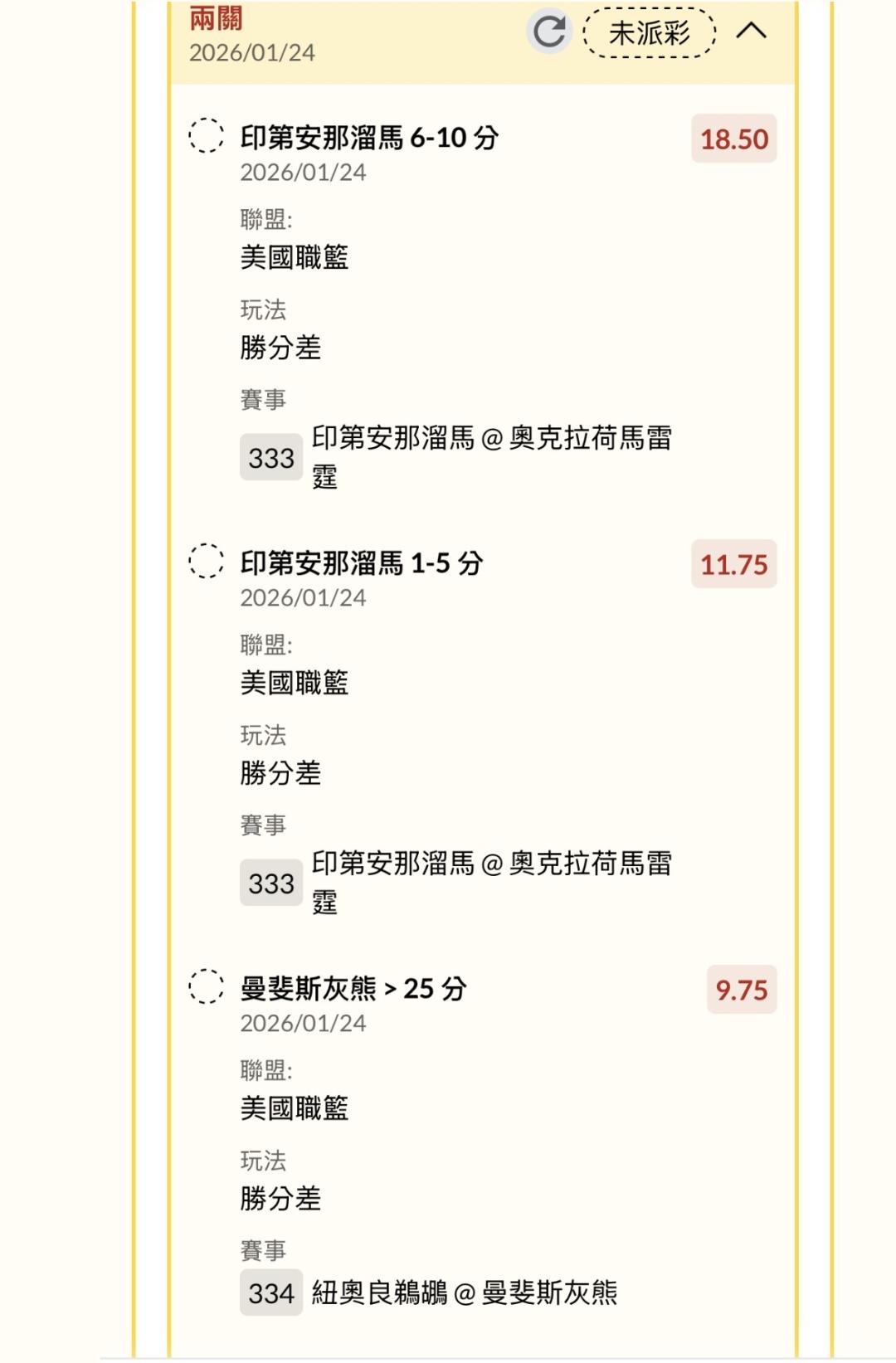 NBA >> 灰熊26+,溜馬獨贏包牌1~10,串二關