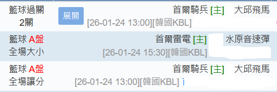 韓國職籃 >> 1/24【國際讓分 連贏4天4過4】【小叮嚀2X1過關】13:00第一節大分推薦!!