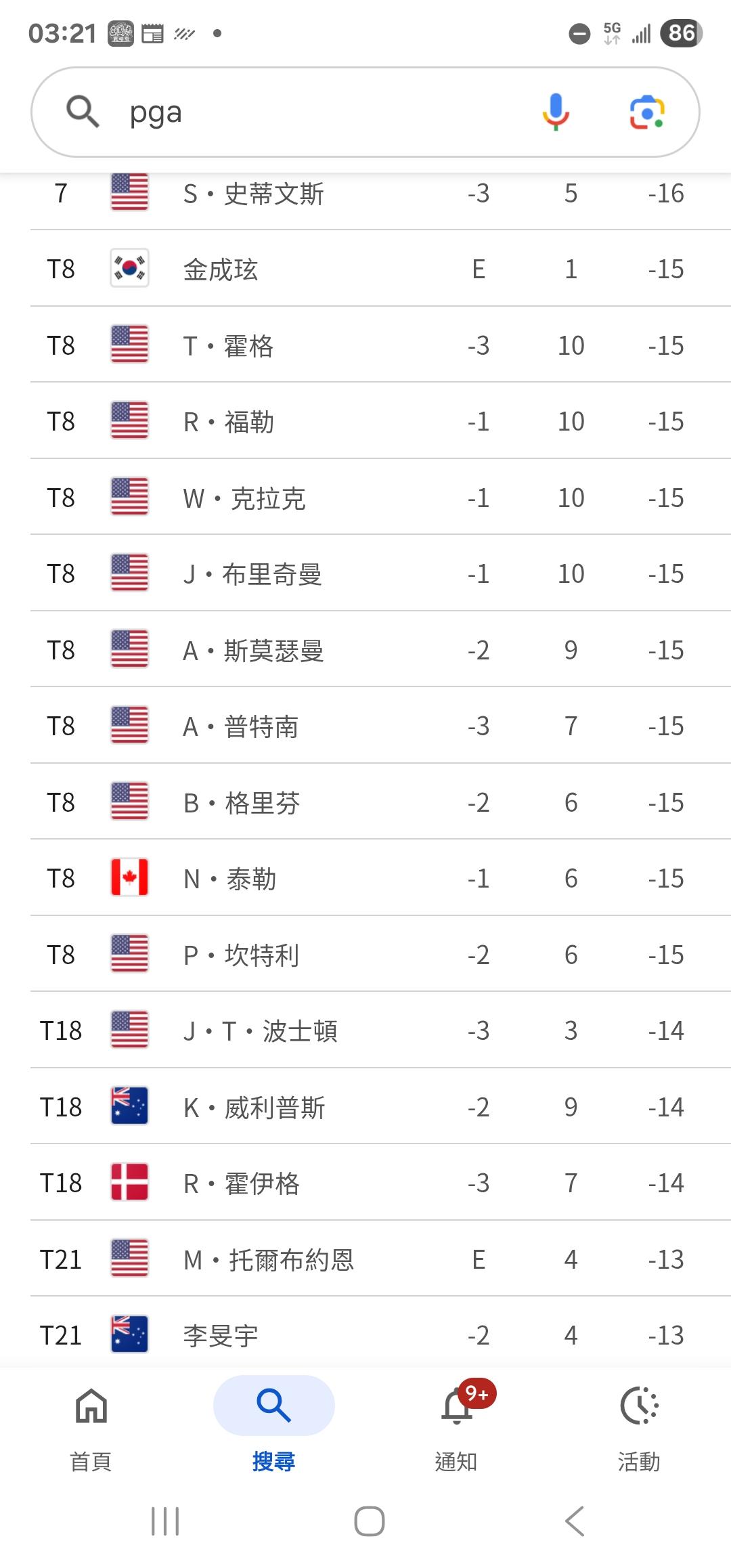 李珉宇目前第6名...除非今天打低於標準8到10杆,比較有機會冠軍,明天再維持水準就穩了,機會很小 |