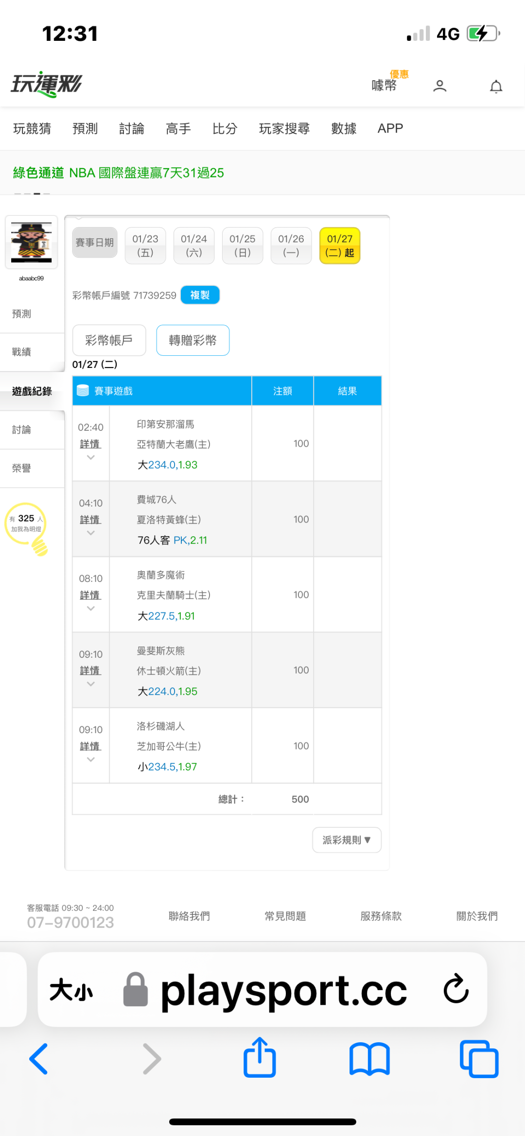 NBA >> 1/27(NBA)5注輸贏(目前8勝1敗)