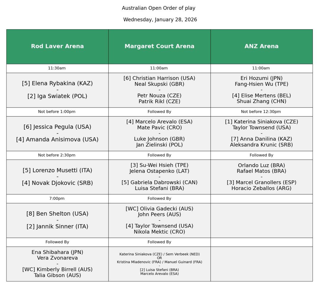 網球 >> 2026澳網第10天