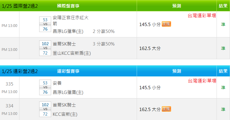 韓國職籃 >> 1/27 韓籃推薦【近兩日雙盤 6過6】【國際盤近4日 7過6】【小叮嚀有注數推薦】【今日特價】