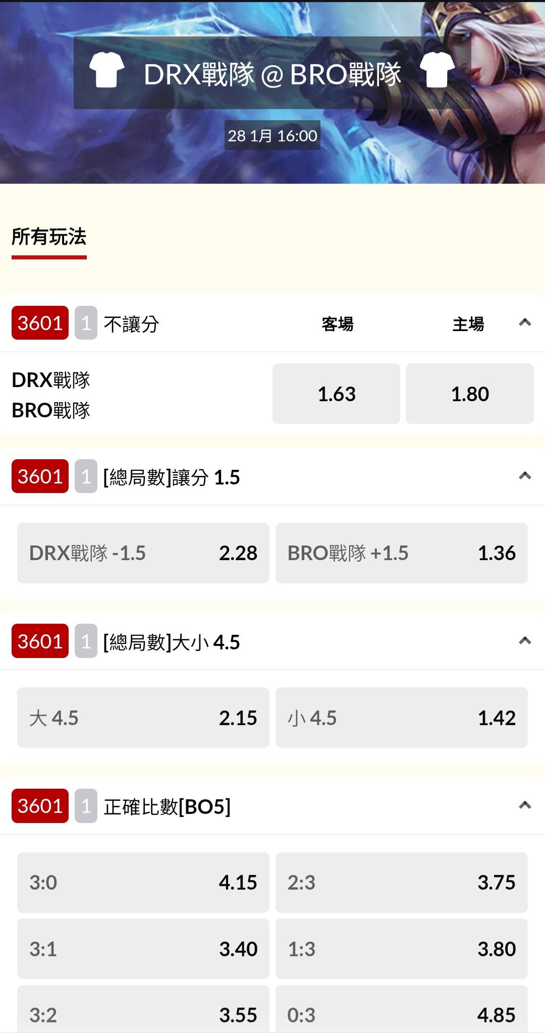 >> 01/28 DRX戰隊 V.S BRO戰隊
