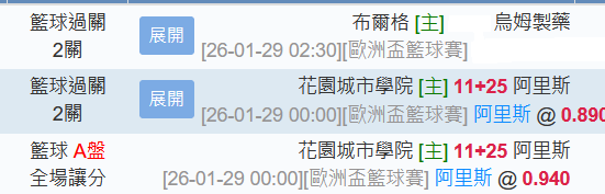 歐洲職籃 >> 1/29【國際主推連過3天】 00:00受讓推薦!