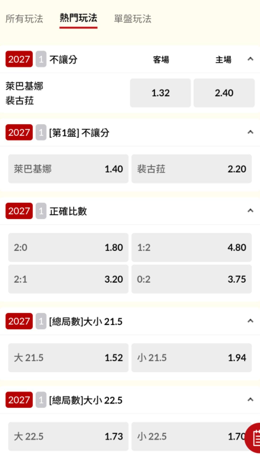 網球 >> 有人有 下午女網的盤嗎
