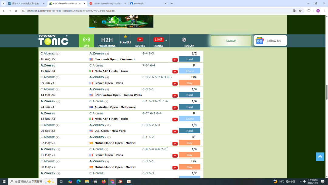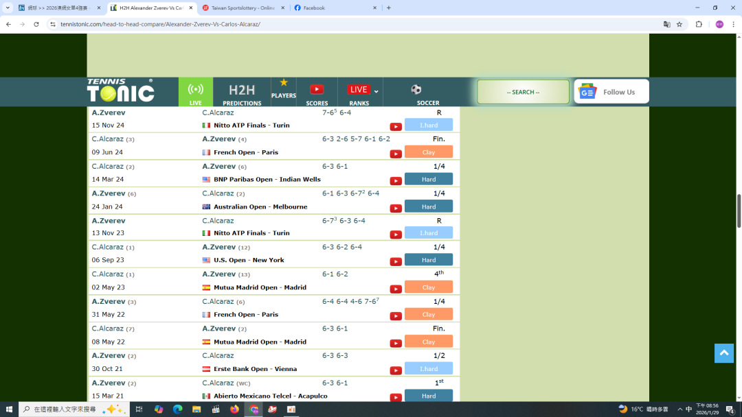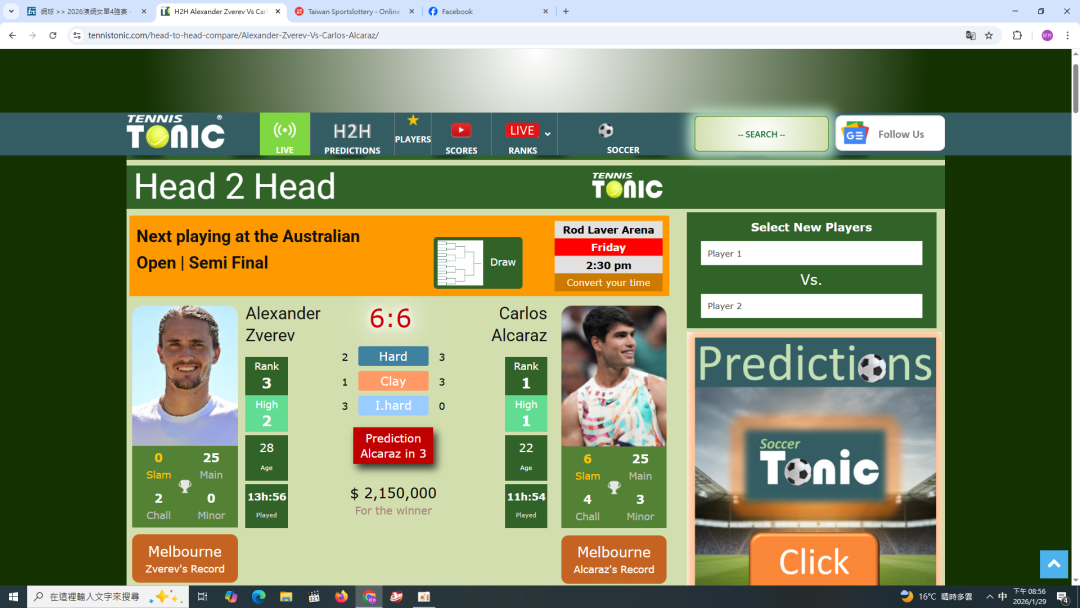 網球 >> 2026澳網女單4強賽
