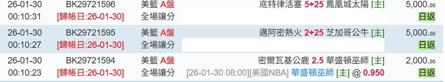 >> 1/30日NBA1場參考(國際 連贏2天 6過6)