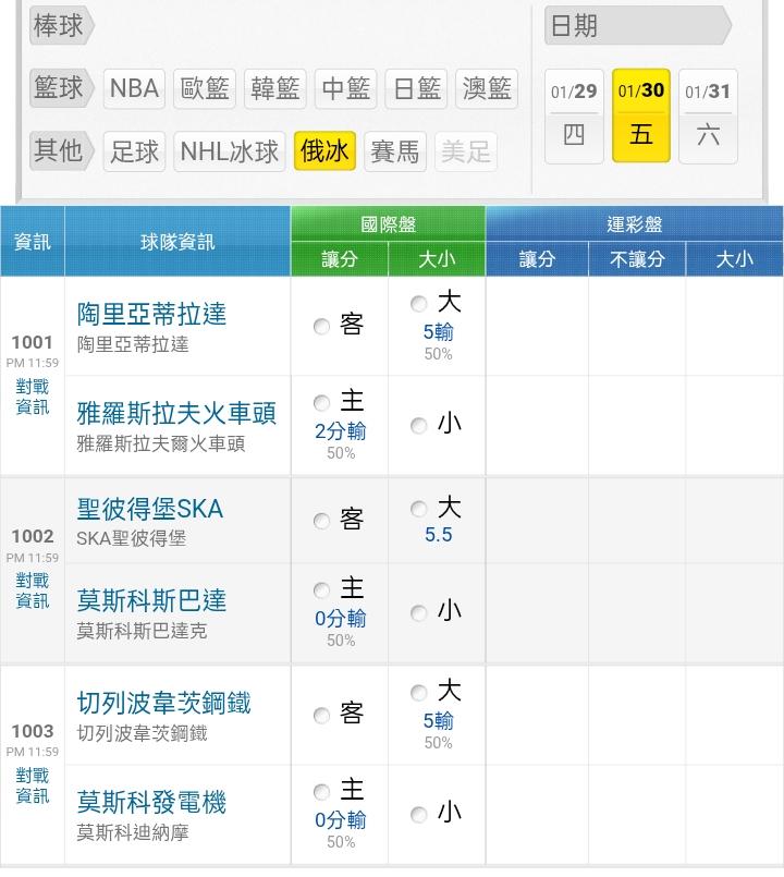 俄羅斯冰球 >> ⭐⭐1/30俄冰盤口