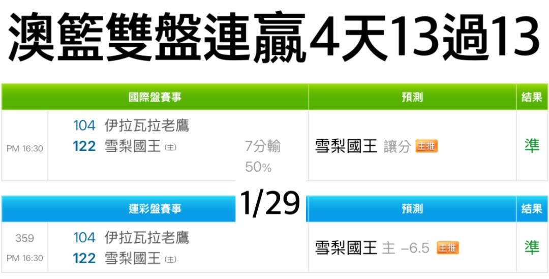 澳洲職籃 >> ✅🏀雙盤連贏4天13過13氣勢正旺16:30信心主推一場輸贏