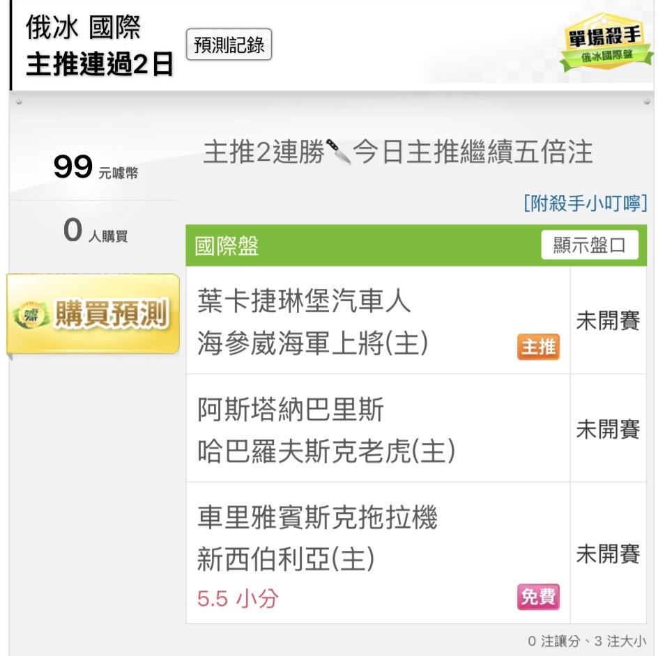 俄羅斯冰球 >> 🏒俄冰國際主推2連勝🏒國際近兩天預測8過7🏒今日主推信心五倍注🏒