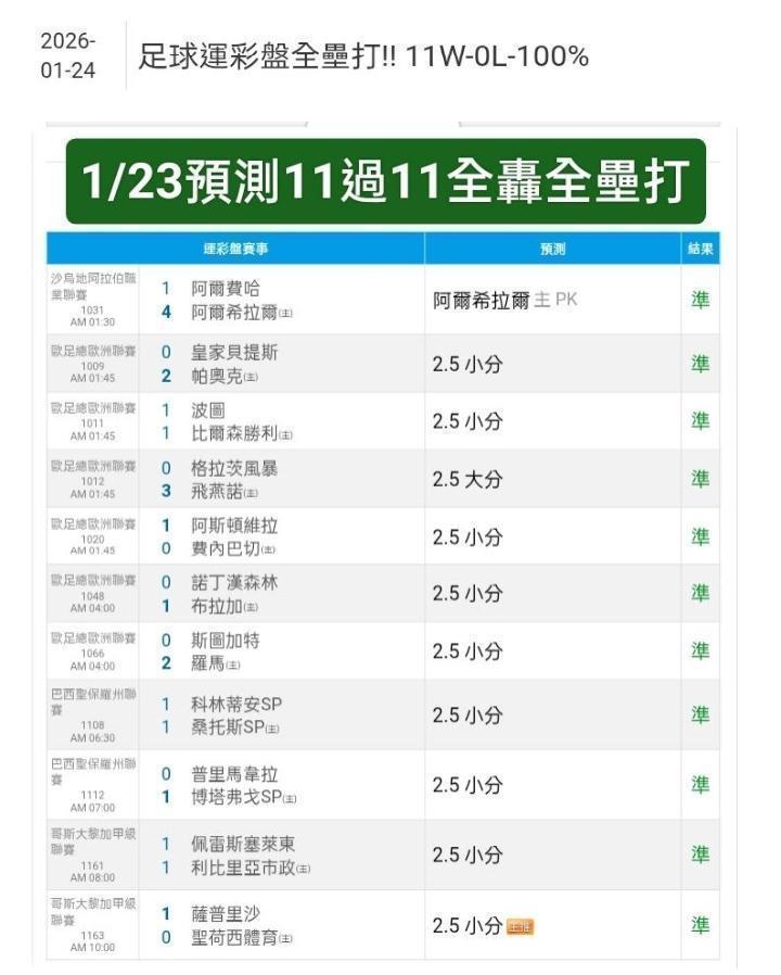 足球 >> ⭐⭐今日命中2場正比+1場和局,正比連中4天,2/3有台彩單場多場,信心主推99%貓場