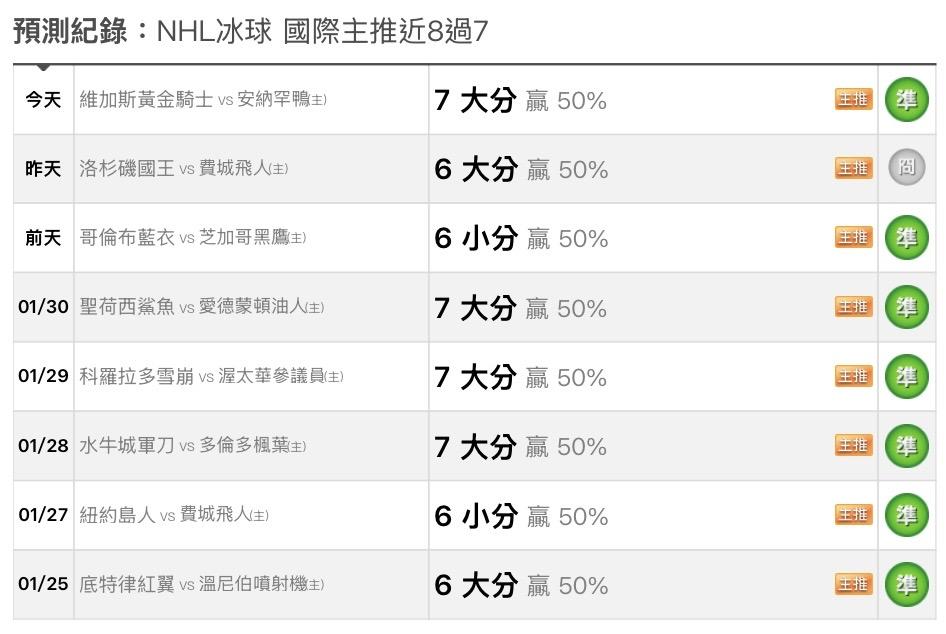 NHL冰球 >> 🏒184期NHL冰球 國際盤 單場殺手🏒近主推8過7🏒明日預測免費🏒主推信心五倍注🏒