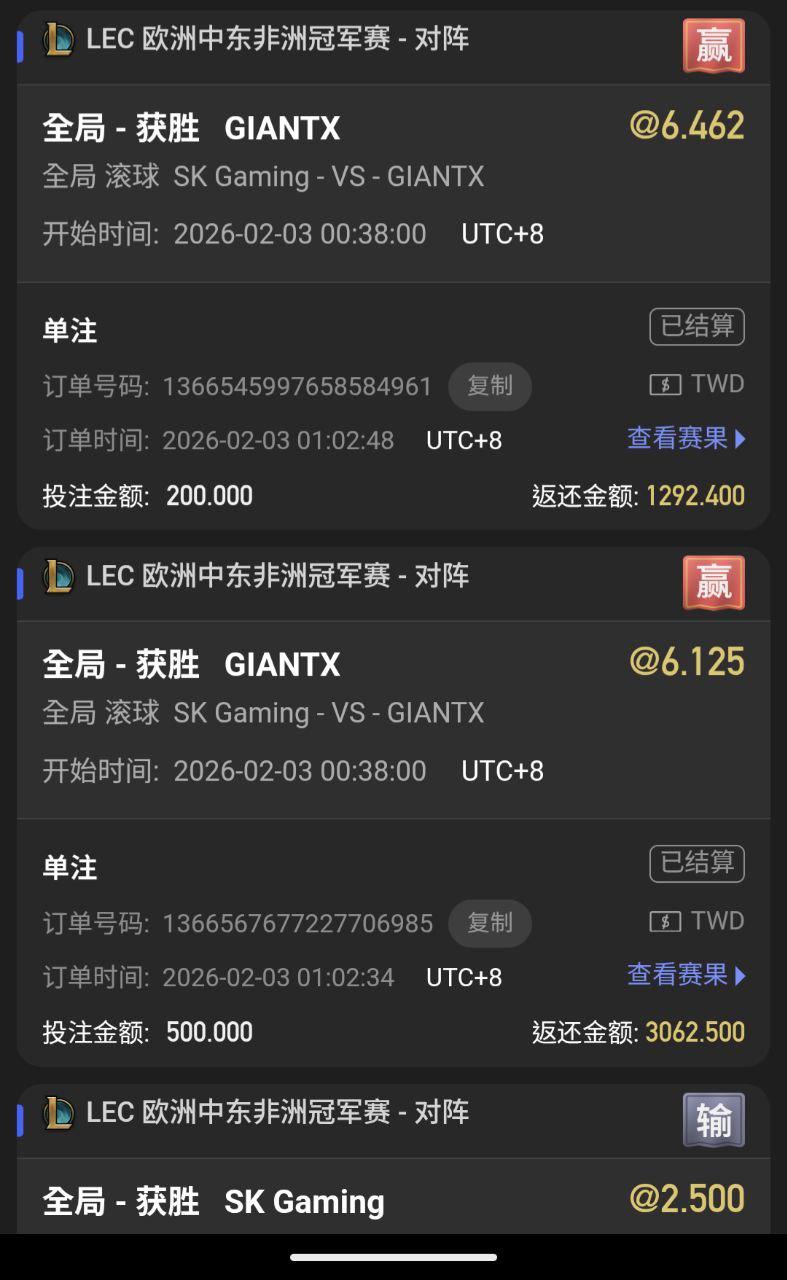 >> 對衝範例2 LEC GX VS SK(2/3 留存)