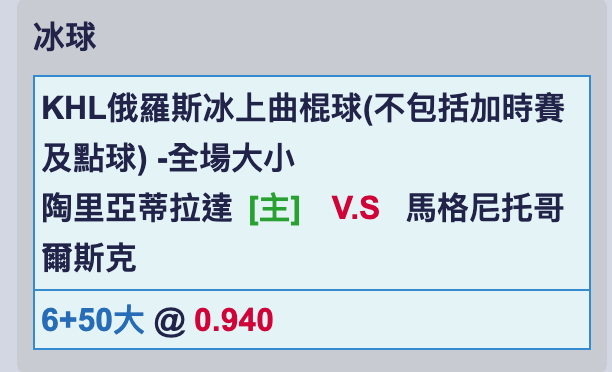 俄羅斯冰球 >> 🏒量身打造,本賽季主推暫居第一,俄冰 國際 主推連過2日