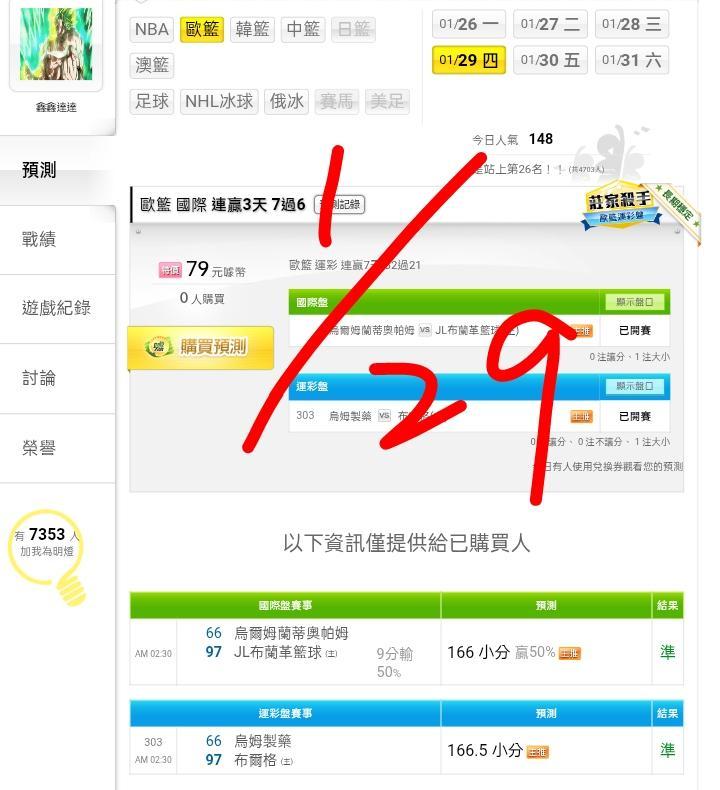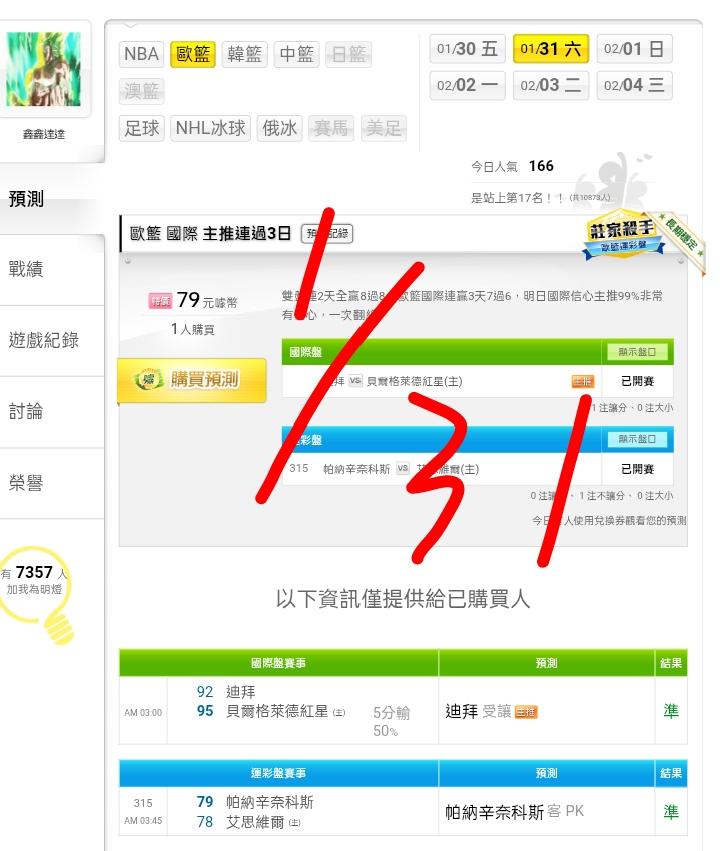 歐洲職籃 >> ⭐⭐雙盤連3天全準⭐⭐歐籃國際主推連過3日,明日信心主推99%非常有信心,一次翻綠