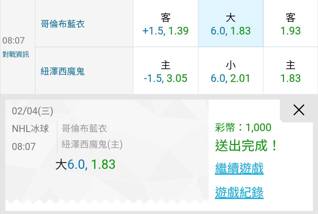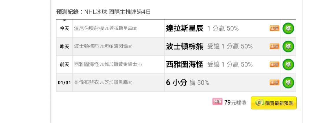 NHL冰球 >> 今天主推又贏錢了4連勝……明天拼主推5連勝