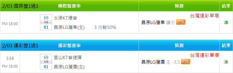 韓國職籃 >> 2/04 韓籃推薦【昨日雙盤 2過2】【國際盤主推近8日過6】【小叮嚀有注數推薦】